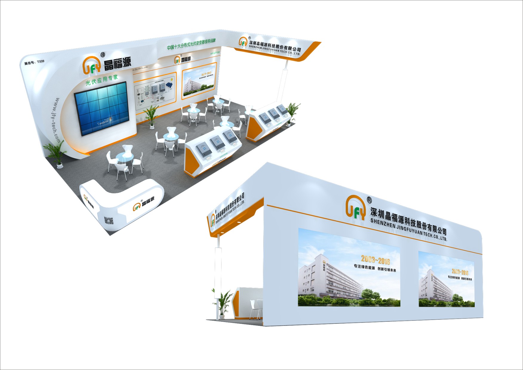 巧妙的運(yùn)用白色搭配橘色,著重突出品牌和產(chǎn)品的展示,使整個(gè)展位高檔大氣