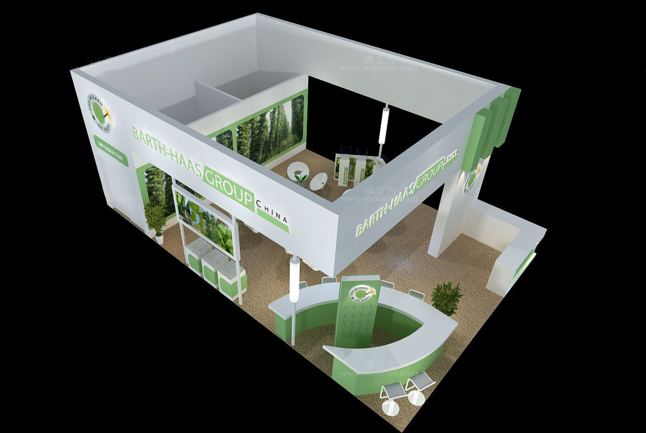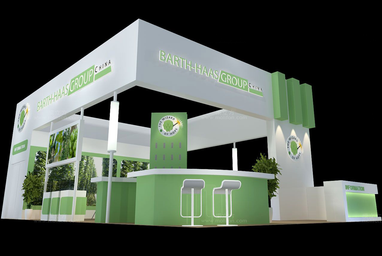 巧妙的運(yùn)用綠色、白色作搭配,著重突出品牌和產(chǎn)品的展示,使整個(gè)展位時(shí)尚新穎。
