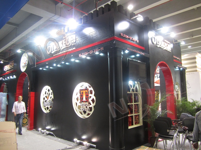 巧妙的運用紅色、黑色作搭配,著重突出品牌和產品的展示,使整個展位時尚新穎。