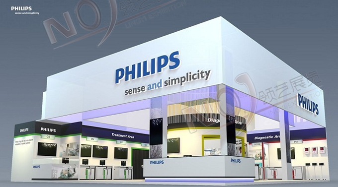 契合的飛利浦品牌形象和產(chǎn)品特性,采用矩形結(jié)構(gòu),再搭配燈具燈光的效果,襯托出展位高端、時尚的氛圍,突出一種現(xiàn)代、歐美的時尚品味。