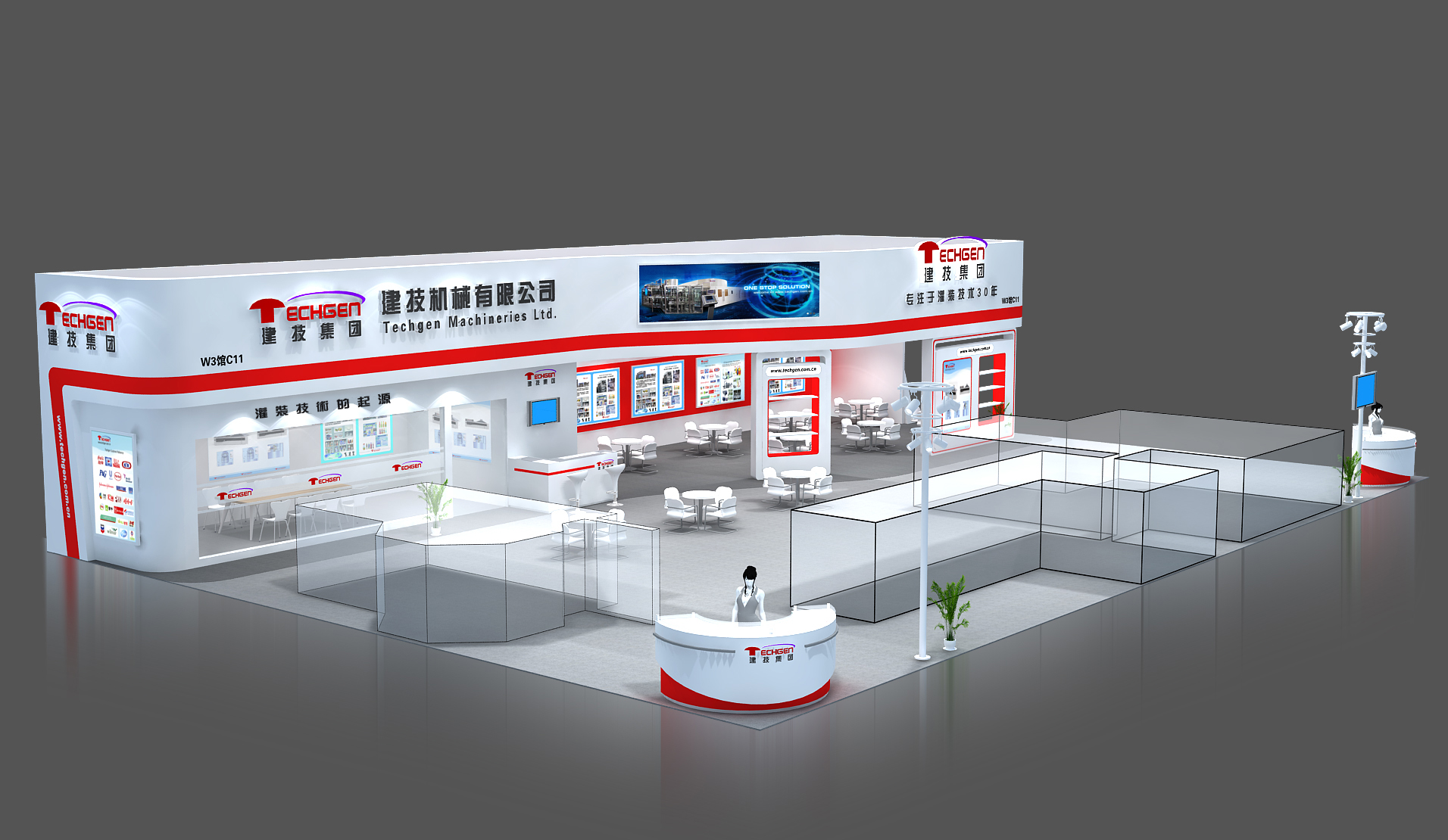 契合建計(jì)集團(tuán)的品牌形象和產(chǎn)品特性,采用矩形結(jié)構(gòu),再搭配燈具燈光的效果,襯托出展位簡(jiǎn)約、舒適的氛圍,突出一種現(xiàn)代、高端的時(shí)尚品味。