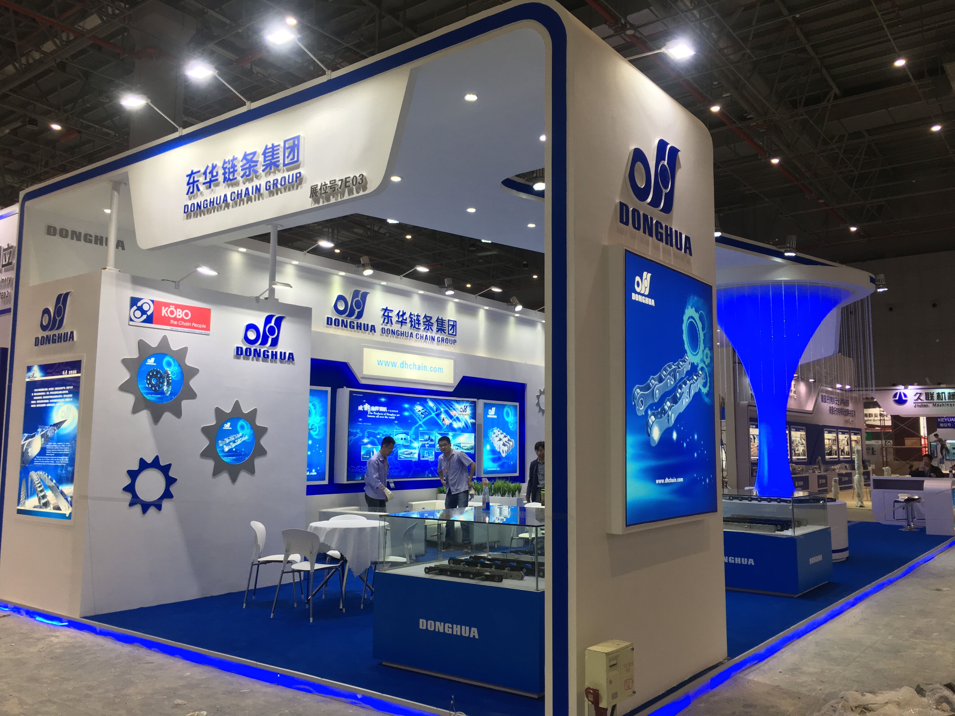 契合東華鏈條的品牌形象和產(chǎn)品特性,采用開放式式的造型,再搭配燈具燈光的效果,襯托出展位現(xiàn)代、清新氛圍,突出一種現(xiàn)代、高端的時尚品味。
