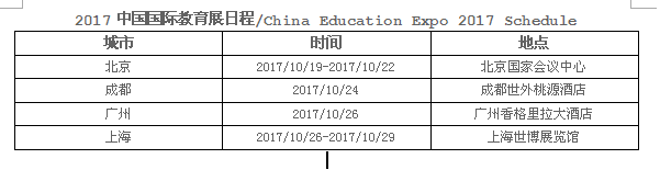 素有“留學(xué)風(fēng)向標(biāo)”之稱的中國國際教育展,將于2017年10月21日至29日北京和上海等地舉辦。