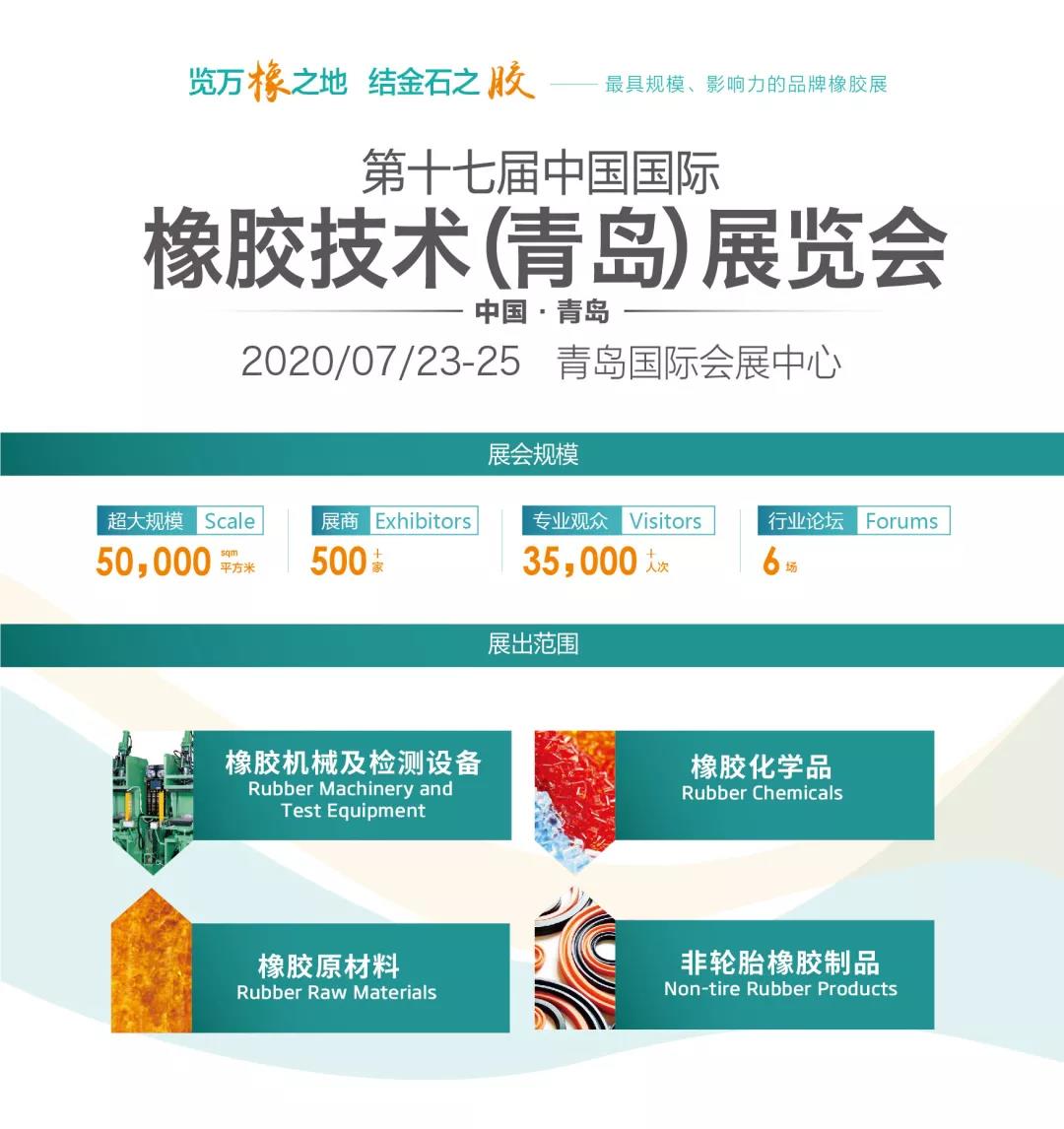 根據(jù)青島橡膠展設(shè)計(jì)搭建公司領(lǐng)藝展覽解到,受疫情影響,為進(jìn)一步做好疫情防控,切實(shí)保障所有參展人員的身體健康、生命安全和經(jīng)濟(jì)利益。經(jīng)協(xié)商決定:原定于2020年4月9日-11日在青島國際會展中心舉辦的“2020第17屆中國國際橡膠技術(shù)與輪胎暨車輪(青島)展覽會”將延期舉辦,具體時(shí)間為2020年7月23-25日,地點(diǎn):青島國際會展中心(嶗山區(qū)苗嶺路9號)。如需青島橡膠展設(shè)計(jì)請聯(lián)系領(lǐng)藝展覽,希望我們能在青島橡膠展搭建上為您添磚加瓦,祝各位朋友收獲多多,滿載而歸!