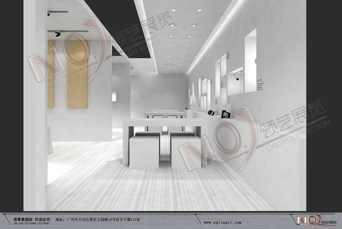 巧妙的運(yùn)用白色作主色調(diào),著重突出品牌和產(chǎn)品的展示,使整個(gè)展位簡(jiǎn)約又大方。