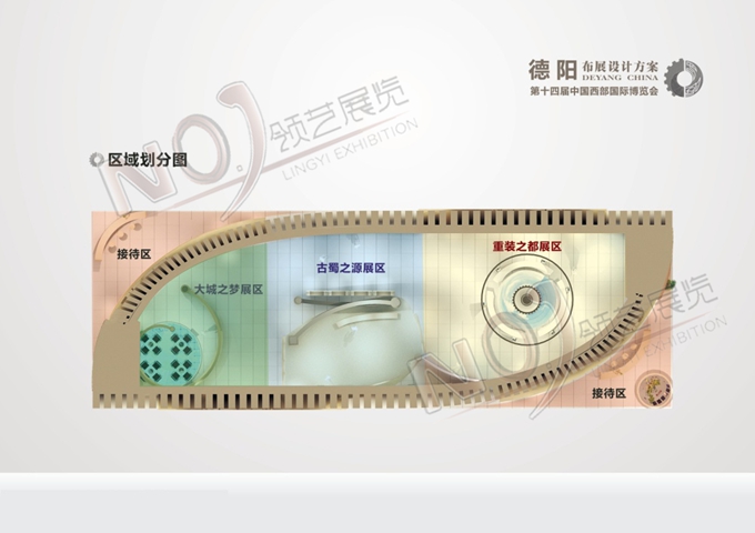 契合德陽(yáng)地區(qū)的品牌形象和產(chǎn)品特性,以齒輪元素為主造型,中部展區(qū)采用雙通道多媒體視頻循環(huán)播放展示德陽(yáng)發(fā)展路程的視頻,并配以桌椅可供來(lái)賓洽談休息,從中體現(xiàn)德陽(yáng)人們的建設(shè)百萬(wàn)人口大城市的成效及夢(mèng)想。